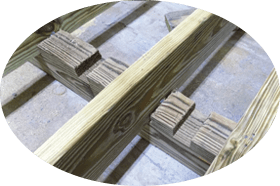 Our 4x6” pressure treaded skids resist rotting and are notched at 12” or 16” on center to ensure consistent floor joist spacing. Recessing and toenailing the joists in the notches lock them in place ensures the shed can be loaded, unloaded, and moved repeatedly without any warping or racking of the floor system.